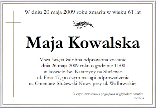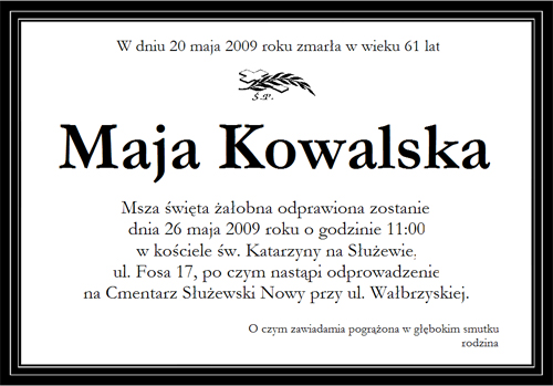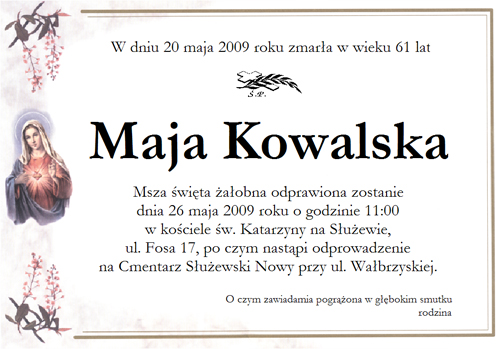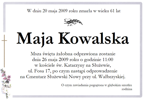 Poniżej przedstawiamy przykładowe wzory wyglądu i treści klepsydry.